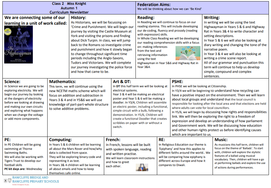 Curriculum Newsletter Autumn 2